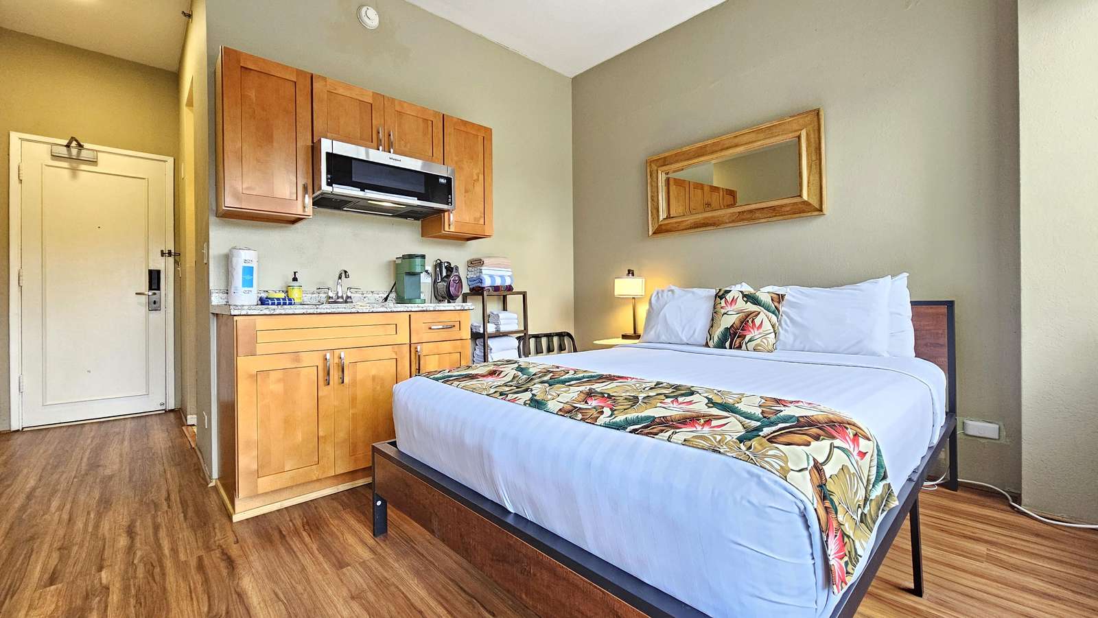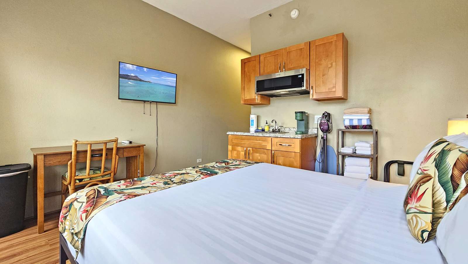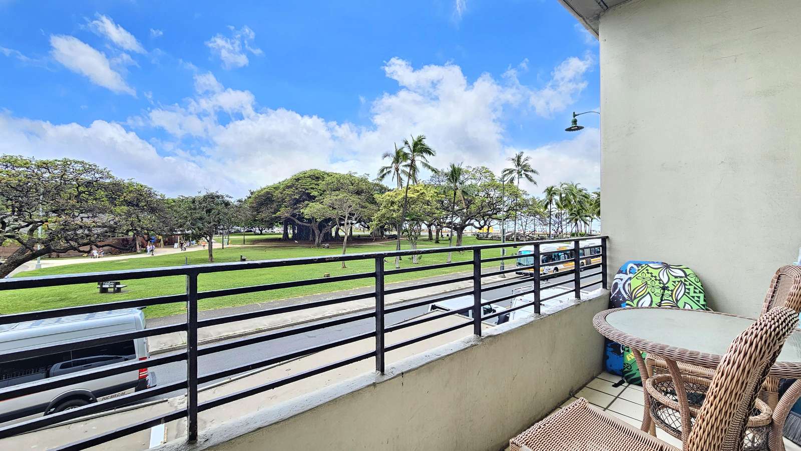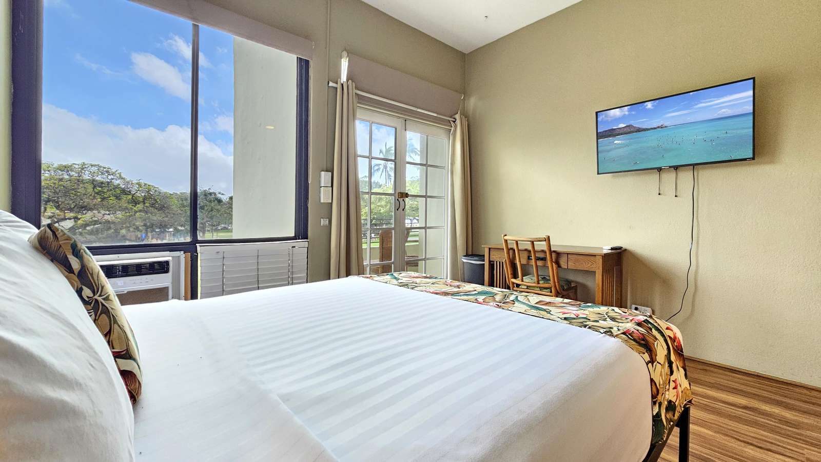This remodeled and updated unit features a Queen size bed, lanai and French doors out to an Ocean & Park View a great Studio suite at the Waikiki Grand Hotel